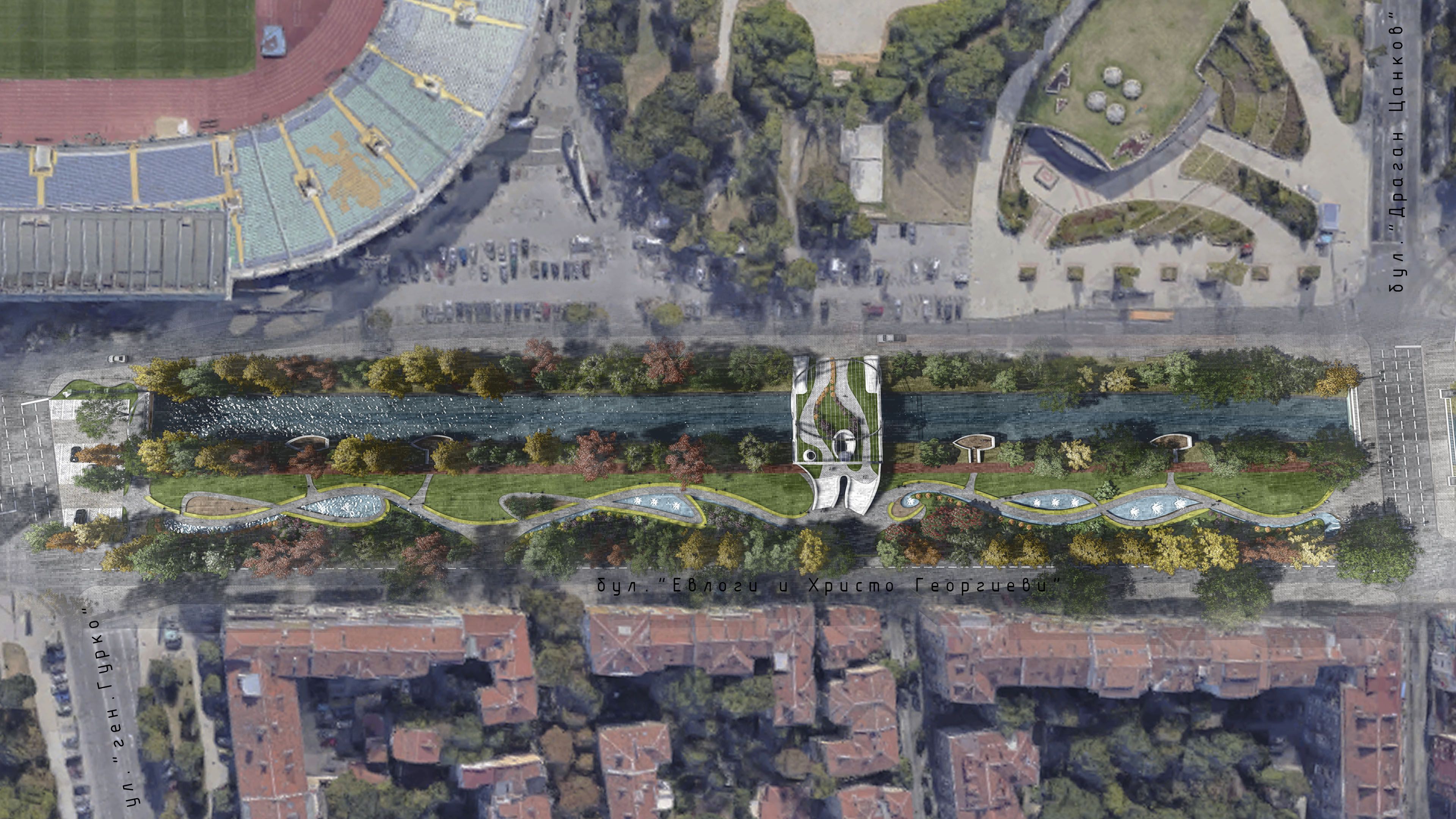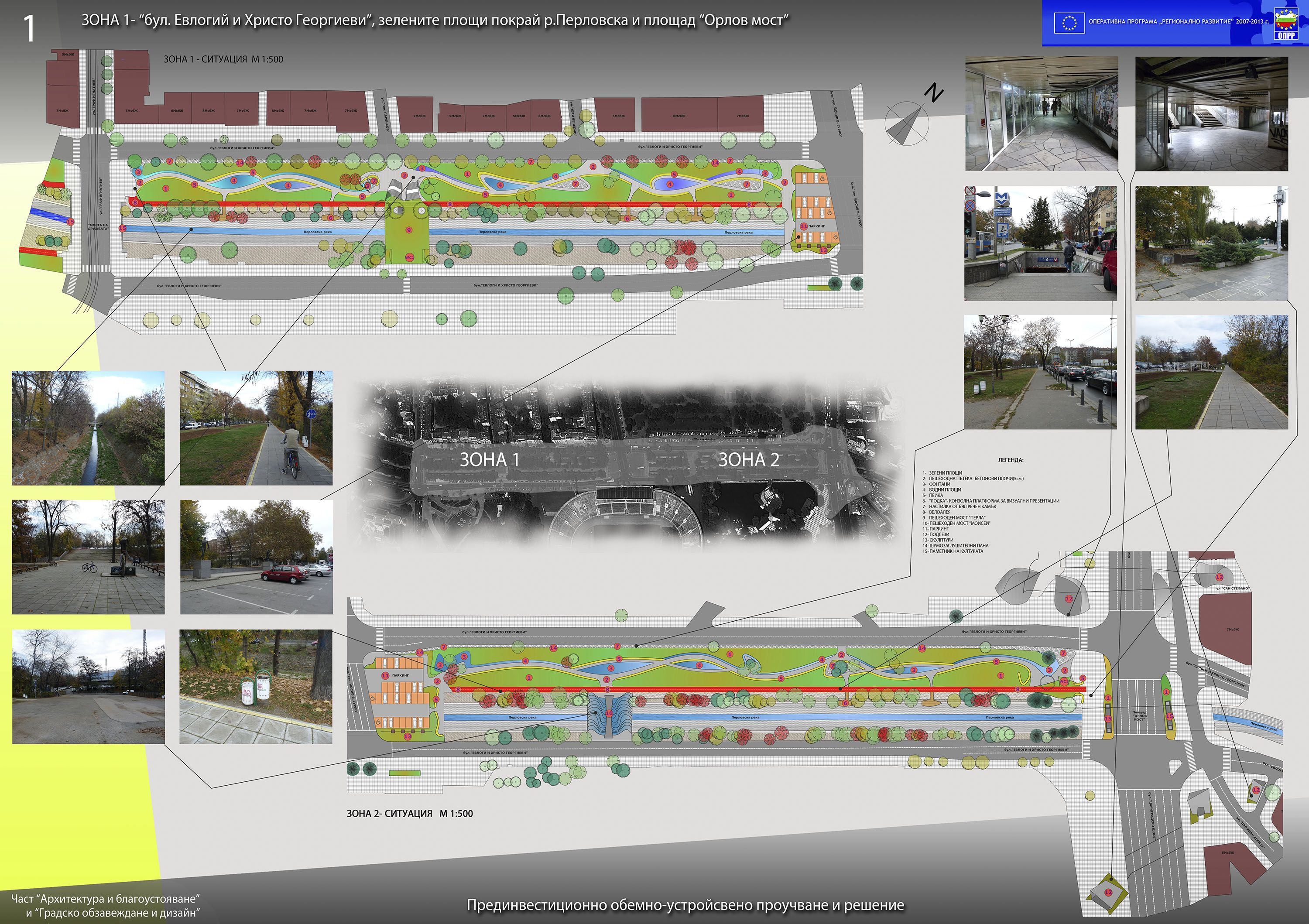 Име: Прединвестиционно обемно-устройствено проучване и решение на Зона 1 /бул."Евлоги и Христо Георгиеви", зелените площи покрай р.Перловска и площад "Орлов Мост"